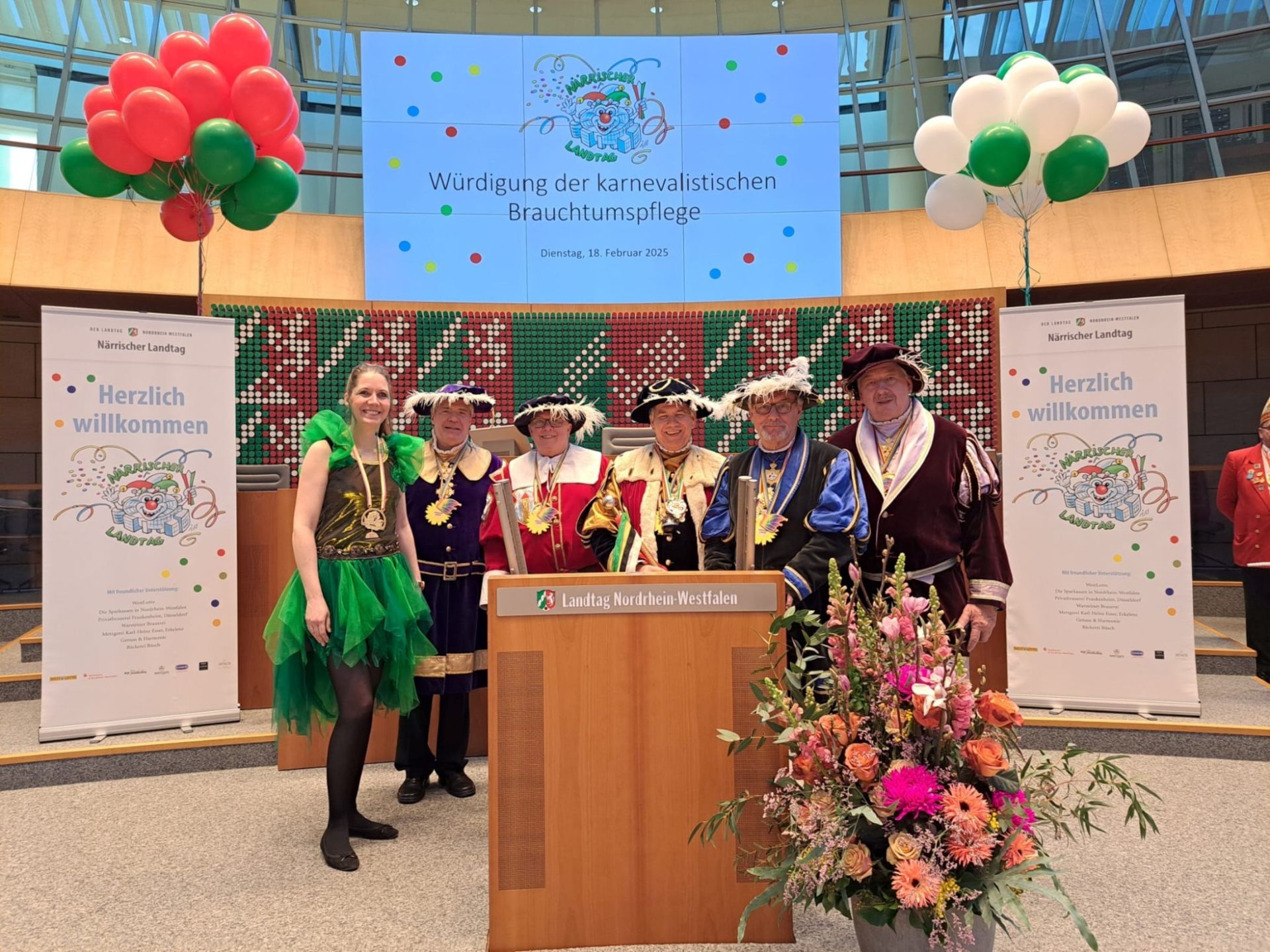 Rheinland, Westfalen oder Lippe - das Herz des nordrhein-westfälischen Karnevals schlug für einen Tag beim Närrischen Landtag: André Kuper lud zur großen karnevalistischen Abendveranstaltung mit einem bunten Programm aus Musikgruppen, Fanfarenzügen und Tanzgruppen aus allen Landesteilen Nordrhein-Westfalens in die Bürgerhalle ein. Mit Helau und Alaaf feierte der Landtag Nordrhein-Westfalen das närrische Brauchtum. Dorothea Deppermann, Landtagsabgeordnete der Grünen / Bündnis 90 freute sich insbesondere, dass die Fastnachtskumpanei "Die Wiedertäufer am Buddenturm" ihrer Einladung folgte und sie gemeinsam beim Närrischen Landtag feierten.